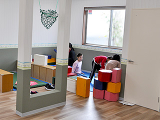 身体・発達に障がいのある子ども、もしくはその心配がある子どもたちを放課後や学校の長期休業期間にお預かりし、ご家族と共にひとりひとりの成長や発達についての支援を行ないます。希望者には、作業療法士や言語療法士による個別機能訓練が可能です。保育士もいますので様々な訓練によって、心身の良好な状態を維持回復させ、日常の生活をを助けるためのリハビリテーション、支援を行ないます。また看護師が在籍していますので呼吸器管理等、重度身体障害児への看護ケアも行います。